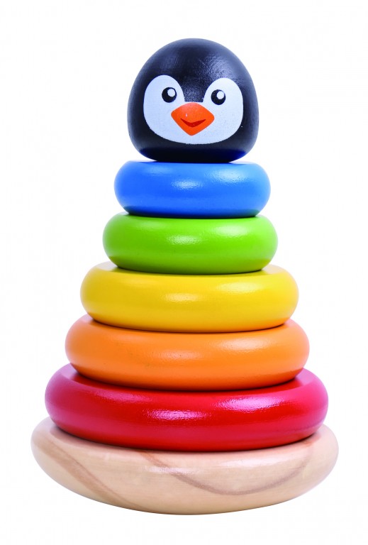Με αυτό τον ξύλινο πιγκουίνο πυραμίδα, το παιδί μπορεί να φτιάξει δικούς τους συνδυασμούς από πολύχρωμες ροδέλες και μπορεί να μάθει τα διαφορετικά μεγέθη.