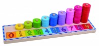 Με αυτόν τον ξύλινο άβακα το παιδί έρχεται σε πρώτη επαφή με τους αριθμούς και το μέτρημα παίζοντας με τις χρωματιστές ροδέλες και αντιστοιχώντας το σωστό αριθμό ροδέλων στον κάθε στύλο. Αυτό το ξύλινο παιχνίδι βοηθάει το παιδί να αναπτύξει τις ικανότητες του με την αριθμητική και τις κινητικές του ικανότητες.