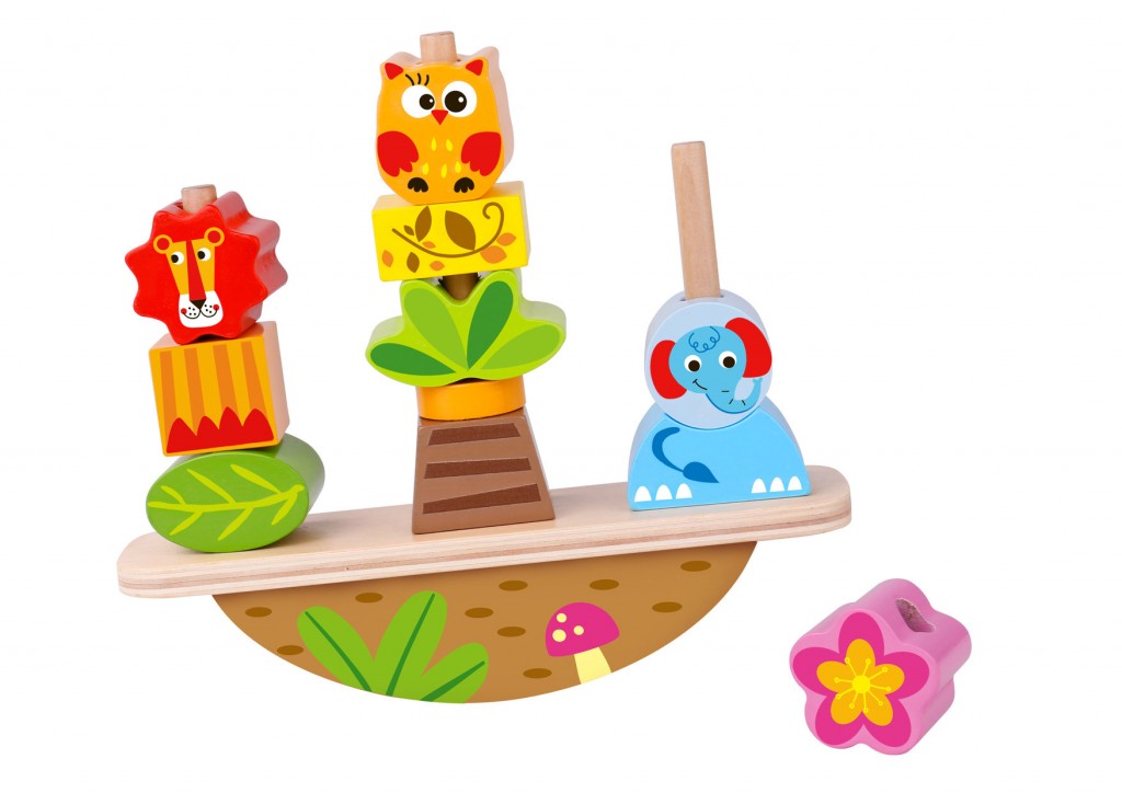 Ξύλινο παιχνίδι ισορροπίας με ζωάκια σε ποικιλία χρωμάτων τα οποία τοποθετεί το παιδί σε κυλινδρικά στηρίγματα, φτιάχνοντας συνθέσεις. Παιχνίδι που βελτιώνει τον συντονισμό χεριού-ματιού, τις λεπτές κινητικές δεξιότητες και την ισορροπία.