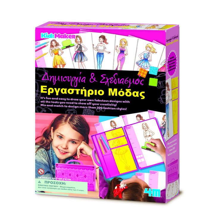 Κάνε το όνειρό σου πραγματικότητα και γίνε μία επιτυχημένη σχεδιάστρια μόδας! Με όλα τα απαραίτητα εργαλεία σχεδίασης, αυτό το εργαστήριο μόδας είναι το ιδανικότερο σετ για να ξεκινήσεις να δημιουργείς τα δικά σου ρούχα! Δες τα σχέδια σου να ζωντανεύουν στο χαρτί, χρησιμοποιώντας τη φαντασία σου. Μπορείς να μοιραστείς τις μοναδικές σου δημιουργίες με τις φίλες σου.