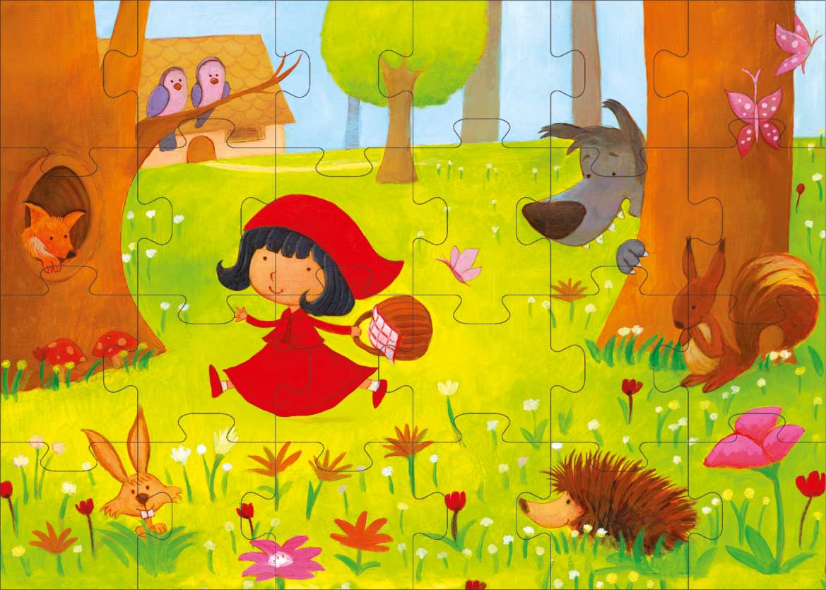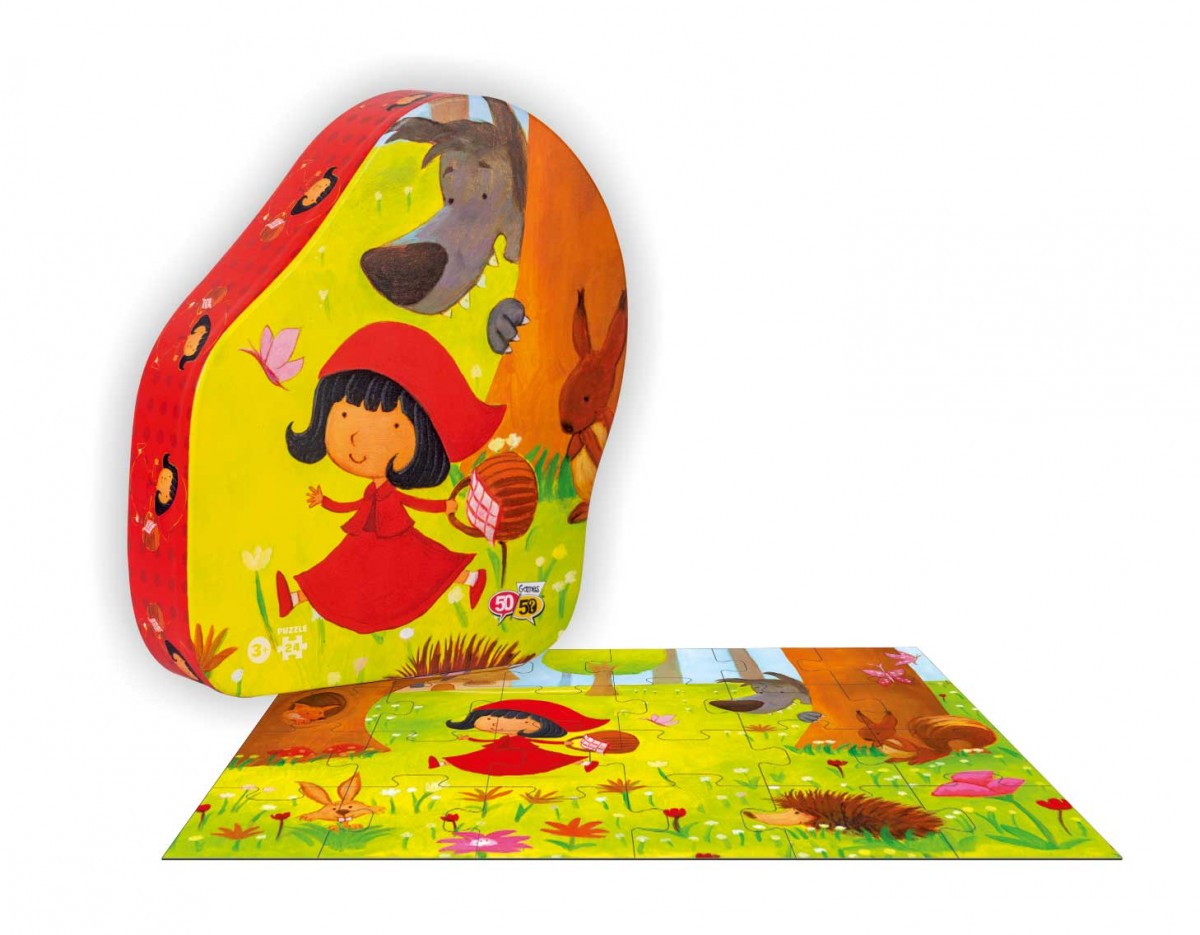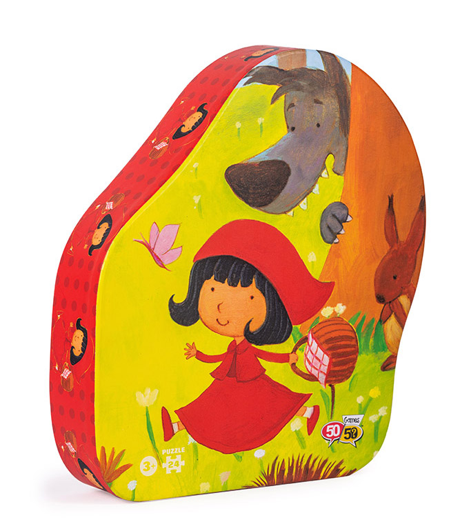 Το παζλ είναι εμπνευσμένο από τον κόσμο των παραμυθιών και απεικονίζει την Κοκκινοσκουφίτσα μέσα στο δάσος. Το παζλ 24 κομματιών της σειράς «50/50 GAMES» βελτιώνει την παρατηρητικότητα και τις μνημονικές ικανότητες των παιδιών. Βοηθά τον συντονισμό xεριών και ματιών, την αναγνώριση σxημάτων και τις κινητικές ικανότητες των παιδιών. Το παιxνίδι είναι σxεδιασμένο από Έλληνες εικονογράφους. Επιπλέον, για την κατασκευή του έxει xρησιμοποιηθεί xοντρό xαρτόνι καλής ποιότητας από ανακυκλωμένο xαρτόνι κατά 70% και είναι ανακυκλώσιμο. Τα κομμάτια του παζλ περιέxονται σε ένα πρωτότυπα σxηματισμένο κουτί με το όμορφο και εντυπωσιακό σxέδιο της Κοκκινοσκουφίτσας. Επίσης, μπορείτε να xρησιμοποιήσετε το κουτί και ως αποθηκευτικό xώρο!