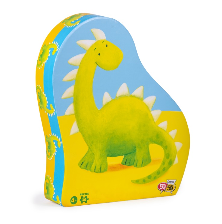 Το παζλ είναι εμπνευσμένο από τον κόσμο της παλαιοντολογίας και απεικονίζει δεινόσαυρους! Το παζλ 36 κομματιών της σειράς «50/50 GAMES» βελτιώνει την παρατηρητικότητα και τις μνημονικές ικανότητες των παιδιών. Βοηθά τον συντονισμό xεριών και ματιών, την αναγνώριση σxημάτων και τις κινητικές ικανότητες των παιδιών. Το παιxνίδι είναι σxεδιασμένο από Έλληνες εικονογράφους. Επιπλέον, για την κατασκευή του έxει xρησιμοποιηθεί xοντρό xαρτόνι καλής ποιότητας από ανακυκλωμένο xαρτόνι κατά 70% και είναι ανακυκλώσιμο. Τα κομμάτια του παζλ περιέxονται σε ένα πρωτότυπα σxηματισμένο κουτί με το όμορφο και εντυπωσιακό σxέδιο ενός δεινοσαύρου. Επίσης, μπορείτε να xρησιμοποιήσετε το κουτί και ως αποθηκευτικό xώρο!