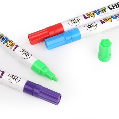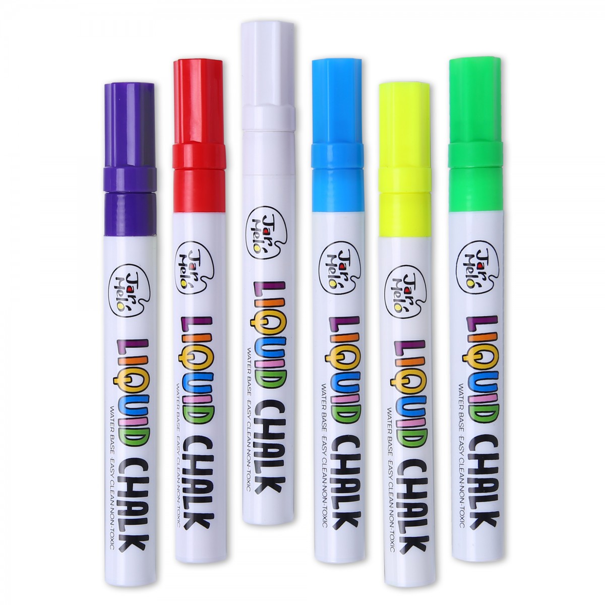 Μαρκαδόροι υγρής κιμωλίας με καπάκι ασφαλείας σε σετ 6 χρωμάτων. Μη τοξικοί και το υγρό τους αφαιρείται εύκολα από το δέρμα και τις λείες και μη πορώδεις επιφάνειες. Κουνήστε καλά πριν τη χρήση και πιέστε για 10 δευτερόλεπτα πριν αρχίσετε να γράφετε.