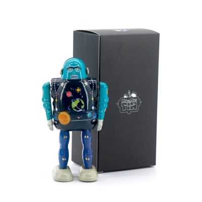 Ένα ιδιαίτερο χειροποίητο κουρδιστό μεταλλικό ρετρό ρομπότ εμπνευσμένο από τις δεκαετίες του ΄50 και του ΄60. Κατασκευασμένο από κασσίτερο, είναι χειροποίητο και αποτελείται από πολύχρωμα γραφικά σχεδιασμένα με κάθε λεπτομέρεια, αγάπη και μεράκι. Στην Ελλάδα ήταν δημοφιλή ως τσίγκινα παιχνίδια.