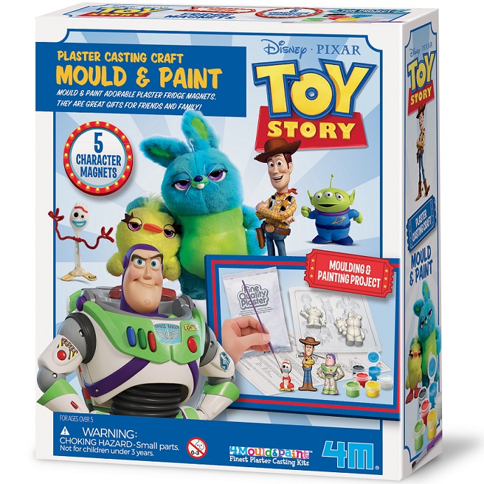 Βάλε τον γύψο στα καλούπια, χρωμάτισέ τον, κόλλησε τους ειδικούς μαγνήτες και διακόσμησε το ψυγείο σου με τους χαρακτήρες από την ταινία Toy Story. Αποτελεί επίσης, ένα ιδιαίτερο δώρο για τους φίλους και την οικογένειά σου!