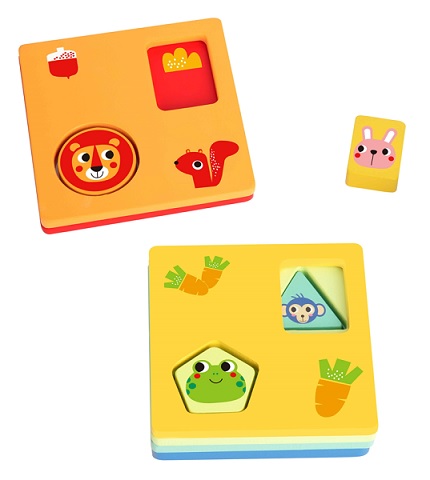 Το παιδί προσπαθεί να ταιριάξει τα σχήματα με τις αντίστοιχες οπές των ξύλινων πλακών – παζλ αλλά παράλληλα μπορεί να τις στοιβάξει μεταξύ τους ανά σχήμα και να προσπαθήσει να τοποθετήσει ξανά τα σχήματα στις αντίστοιχες οπές.