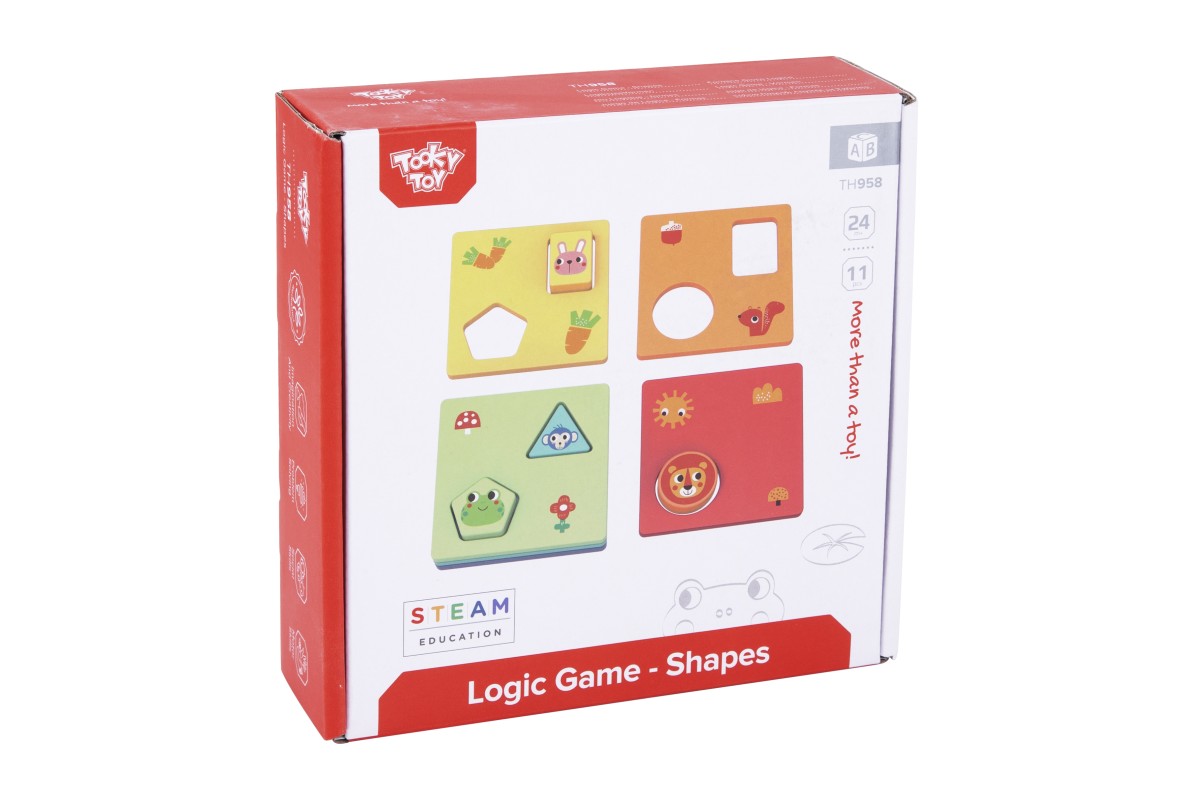 Πρόκειται για ένα εκπαιδευτικό παιχνίδι της κατηγορίας STEAM που καλλιεργεί τις μαθηματικές, κινητικές και αντιληπτικές δεξιότητες του παιδιού. Το παιχνίδι αποτελείται από 6 διαφορετικές και πολύχρωμες ξύλινες πλάκες-παζλ με όμορφα χρώματα και ζωγραφιές που θα κεντρίσουν την οπτική και το ενδιαφέρον των μικρών παικτών. Επίσης, αποτελείται 5 διαφορετικά γεωμετρικά σχήματα (τετράγωνο, παραλληλόγραμμο, πεντάγωνο, κύκλος και τρίγωνο) με ζωγραφισμένα ζωάκια που είναι γνώριμα στα παιδιά.