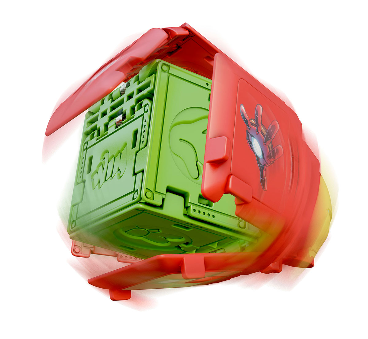 Η συσκευασία περιλαμβάνει 2 Battle Cubes με διαφορετικούς ήρωες και 6 μάρκες.