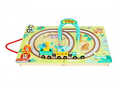 To Ξύλινο Τρενάκι Ζωολογικός Κήπος είναι ένα πρωτότυπο διαδραστικό παιχνίδι εμπνευσμένο από την καθημερινή ζωή της πόλης και του ζωολογικού κήπου.