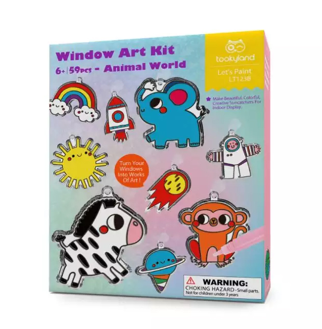 Το σετ ζωγραφικής & διακόσμησης παραθύρου ζώα του κόσμου αποτελείται από φιγούρες με τη μορφή ζώων για χρωματισμό. Είναι κατάλληλο για παιδιά άνω των 6 ετών. Οι φιγούρες μπορούν να τοποθετηθούν ως διακόσμηση σε γυαλί ή τοίχο. Το σετ ζωγραφικής & διακόσμησης παραθύρου αποτελεί μια ευχάριστη δραστηριότητα, μέσω της οποίας το παιδί μπορεί να αξιοποιήσει τη φαντασία του και τη δημιουργικότητά του.