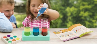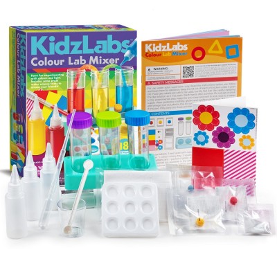 Διασκέδασε κάνοντας πειράματα με τα χρώματα και το φως. Στις οδηγίες αναγράφονται μικρά μυστικά και κόλπα για να καταπλήξεις τους φίλους σου χρησιμοποιώντας το νερό και την επιστήμη! Κάνε και τα 18 πειράματα και διάβασε τα ψυχαγωγικά στοιχεία για να μάθεις συναρπαστικές πληροφορίες για τα χρώματα, τα φυτά, το νερό και πολλά άλλα. ΠΕΡΙΕΧΟΜΕΝΑ: 3 δισκία βαφής τροφίμων (ταμπλέτες), 3 δοκιμαστικοί σωλήνες με καπάκια, 1 βάση για δοκιμαστικούς σωλήνες, 1 σταγονόμετρο, 1 κουτάλι, 1 δοχείο, 1 δίσκος ανάμειξης χρωμάτων, 3 εύκαμπτα πλαστικά μπουκάλια (φιάλες συμπιέσεως), 1 σακουλάκι χαρτομάντιλα, 1 κάρτα με χρωματιστά μοτίβα, 1 σακουλάκι γκλίτερ.