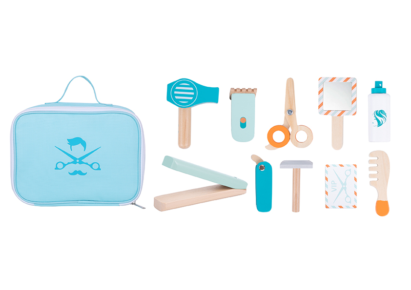Το ξύλινο σετ βαλιτσάκι κομμωτηρίου είναι ένα εκπαιδευτικό παιχνίδι, ιδανικό για παιδιά άνω των 3 ετών. Το σετ περιλαμβάνει όλα τα απαραίτητα ξύλινα εργαλεία κομμωτικής, όπως ψαλίδι, χτένα και σεσουάρ μαλλιών.Το παιδί μπορεί να αναπτύξει την δημιουργικότητα και τη φαντασία του, φτιάχνοντας τα δικά του πρωτότυπα χτενίσματα. Το παιχνίδι βοηθά στην ανάπτυξη της αντιληπτικής ικανότητας, μέσω της απόκτησης γνώσεων πάνω στη χρησιμότητα των διαφόρων εργαλείων κομμωτικής. Το ξύλινο σετ βαλιτσάκι κομμωτικής είναι ένα διασκεδαστικό παιχνίδι για την βελτίωση των κινητικών δεξιοτήτων, καθώς και για την ανάπτυξη του ομαδικού πνεύματος.