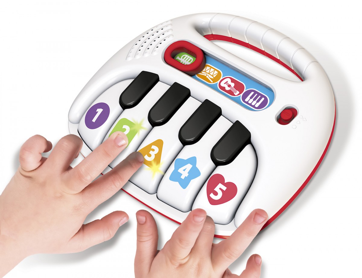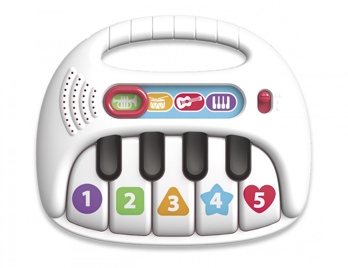 Με το Εκπαιδευτικό Πιάνο με Ήχους και Φωτάκια κάθε μικρός καλλιτέχνης θα ικανοποιήσει την περιέργεια του για τη μουσική! Το παιδί μπορεί να ακούσει χορευτικές μελωδίες, νανουρίσματα και ήχους μουσικών οργάνων. Οι τέσσερις διαφορετικές ρυθμίσεις του πιάνου δημιουργούν τις ιδανικές συνθήκες για την εκμάθηση των αριθμών, των σχημάτων και των χρωμάτων! Το παιχνίδι προάγει τη δημιουργικότητα και τη φαντασία του παιδιού, ενθαρύνοντας το να φτιάξει τις δικές του μοναδικές μουσικές συνθέσεις.