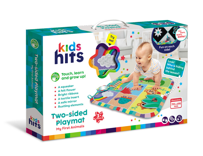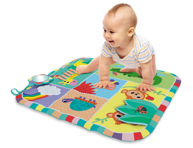 Το Βρεφικό Χαλάκι Διπλής Όψης είναι ένα πρωτότυπο παιχνίδι! Διαθέτει μπροστινή πλευρά με έντονα χρώματα, ενώ η πίσω πλευρά του είναι ασπρόμαυρη. Το χαλάκι βοηθά στην ενδυνάμωση της οπτικής ικανότητας και της αισθητηριακής ανάπτυξης. Έχει μαλακή υφή και περιλαμβάνει ποικιλία αξεσουάρ που τραβούν την προσοχή του παιδιού, κρατώντας το απασχολημένο για ώρες.