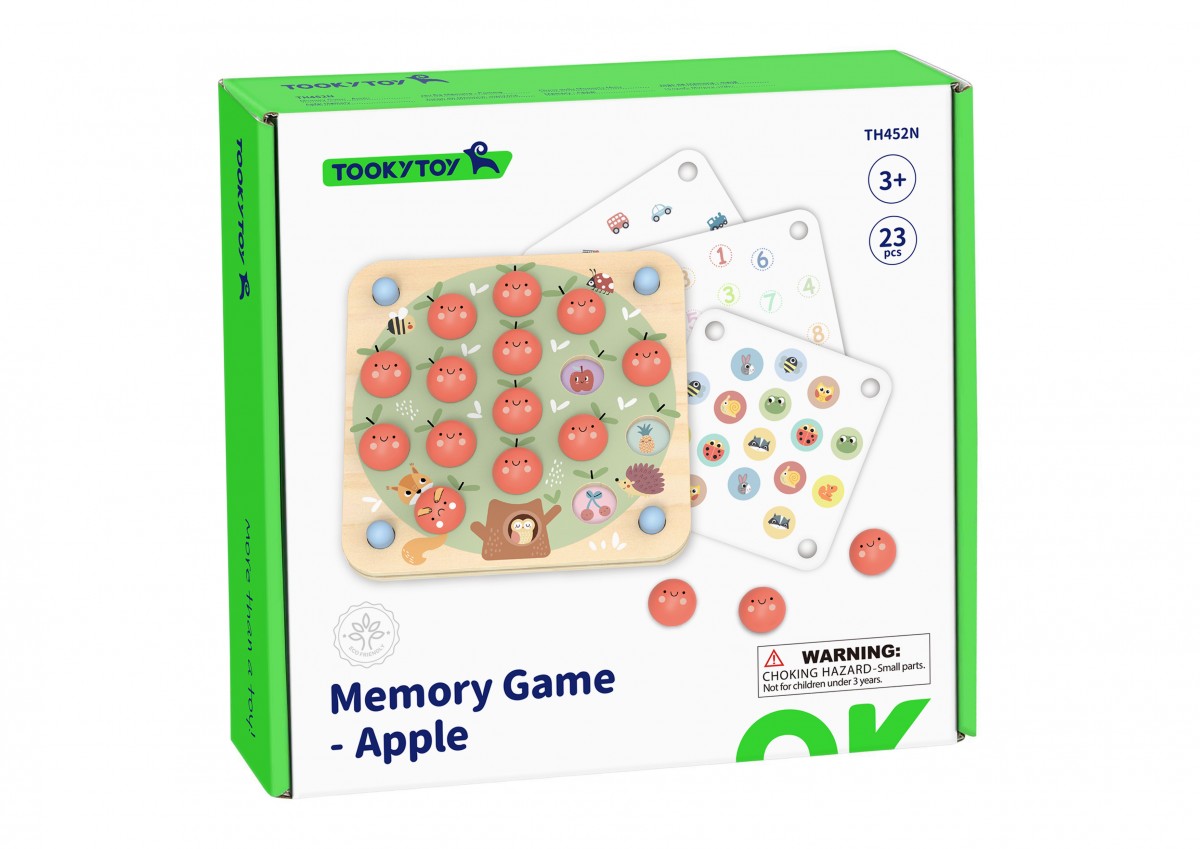 Ανακαλύψτε το υπέροχο ξύλινο παιχνίδι μνήμης με μηλαράκια από την Tooky Toy. Ενα παιχνίδι μνήμης που υπόσχεται ώρες συναρπαστικής διασκέδασης. Με τον αξιολάτρευτο σχεδιασμό του με χαριτωμένα μήλα που περιμένουν να τα μαζέψετε από το δέντρο, δοκιμάστε τη μνήμη και τις ικανότητές σας στην παρατήρηση καθώς τα σηκώνετε για να αποκαλύψετε τα διάφορα ζώα ή φρούτα που κρύβονται απο κάτω. Όταν πετυχαίνετε ενα ταίρι συλλέγετε τα μήλα, προσθέτοντας τα στο απόθεμά σας. Ο/Η παίκτης/ρια με τα περισσότερα μήλα στο τέλος του παιχνιδιού βγαίνει νικητής/ριας, προσθέτοντας έτσι και το στοιχείο της ευγενούς άμιλλας.