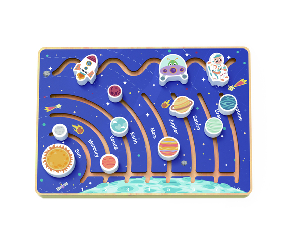 Ο ξύλινος διαστημικός λαβύρινθος από την Tooky Toy περιέχει το Ηλιακό Σύστημα με όλους τους πλανήτες του, οι οποίοι μπορούν να μετακινηθούν μέσα στις σφηνώσεις - τροχές τους. Το παιχνίδι εμπεριέχει τα στοιχεία: ήλιος, πύραυλος, αστροναύτης και εξωγήινος.