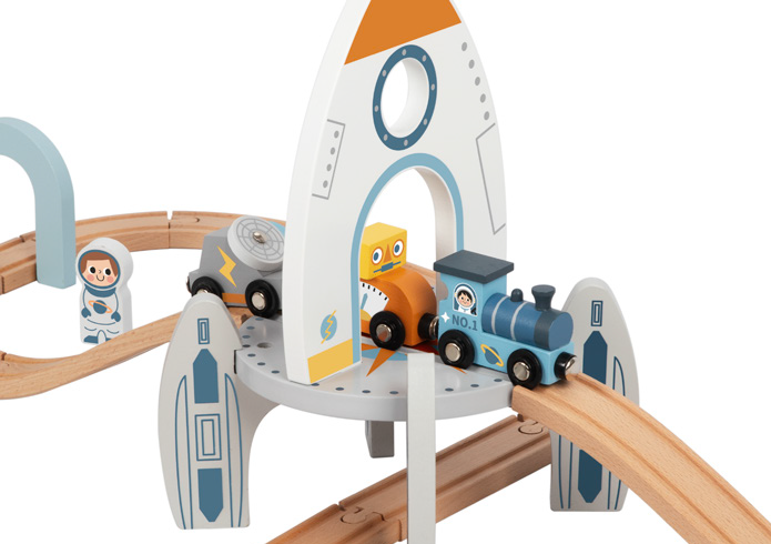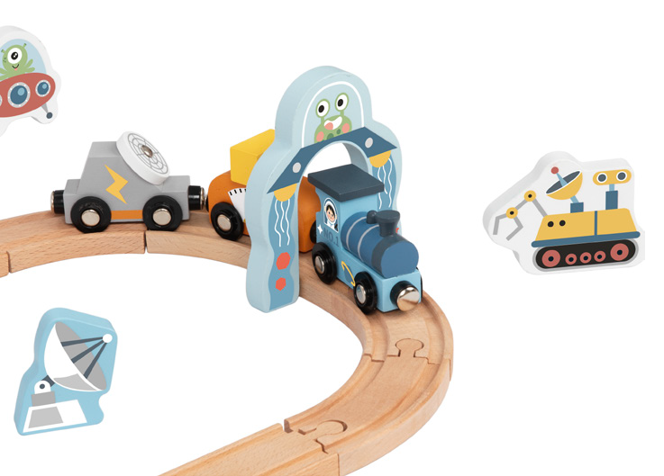 Ο τέλειος συνδυασμός παιχνιδιού τρένο και διαστημικός σταθμός, σε μια νέα σειρά που κανένα παιδί δεν θα μπορεί να αντισταθεί! Το σετ είναι φτιαγμένο εξολοκλήρου από ξύλο, που το καθιστά ένα ασφαλές, αισθητηριακό και πρωτότυπο παιχνίδι.