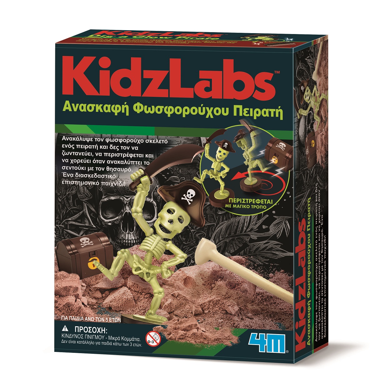 Ανακάλυψε τον φωσφορούχο σκελετό ενός πειρατή και δες τον να ζωντανεύει, να περιστρέφεται και να χορεύει όταν ανακαλύπτει το σεντούκι με τον θησαυρό. Ένα διασκεδαστικό επιστημονικό παιχνίδι!