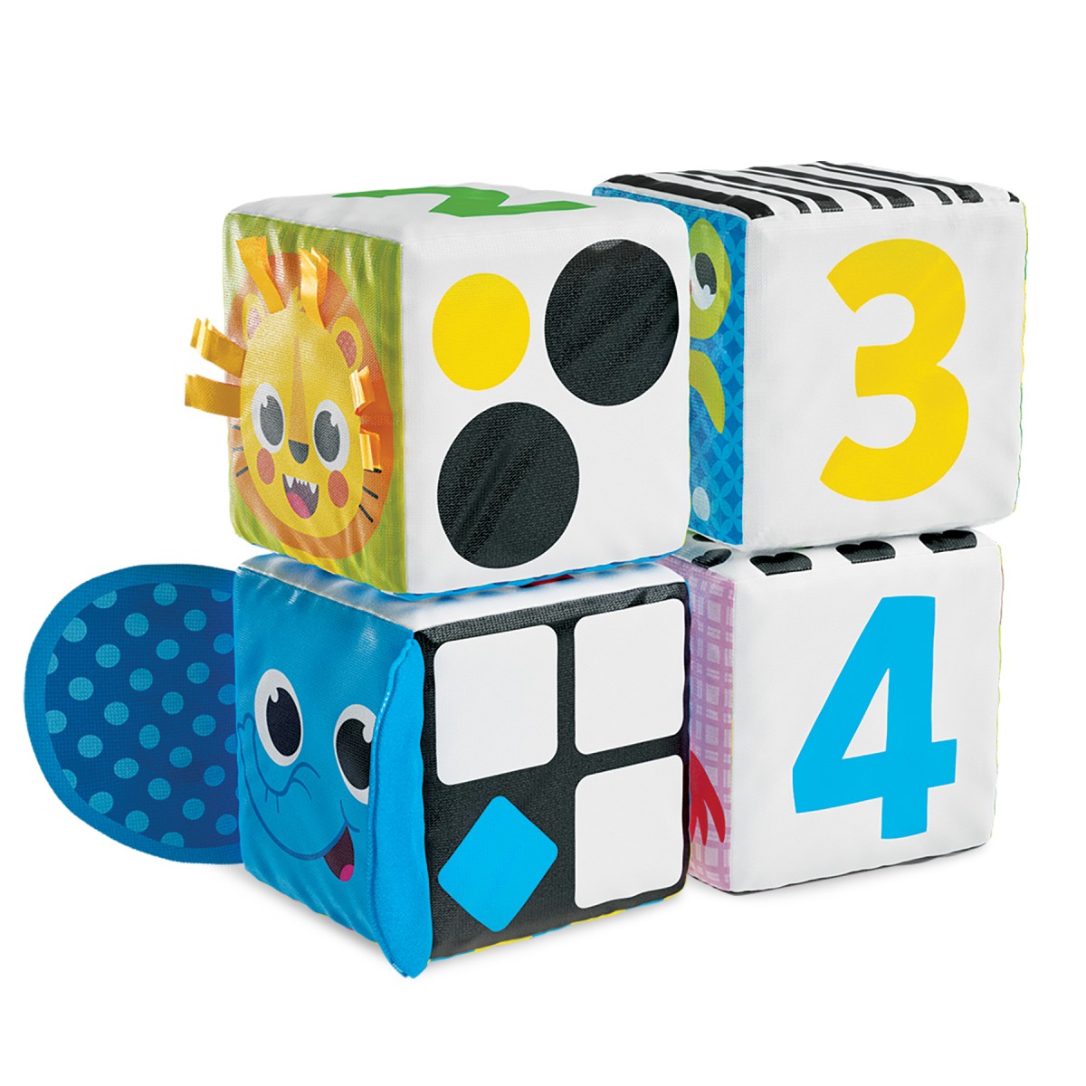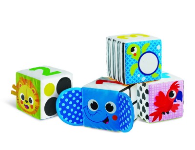 Οι Μαλακοί Κύβοι Ζωολογικός Κήπος θα ενθουσιάσουν όλους τους μικρούς φίλους! Οι κύβοι περιλαμβάνουν ευχάριστες στην αφή λεπτομέρειες, όπως καθρεφτάκι και κορδέλες, οι οποίες προσφέρουν ποικίλα αισθητηριακά ερεθίσματα. Κάθε πλευρά του κύβου περιλαμβάνει και μια διαφορετική πληροφορία. Τα μωρά μπορούν να φτιάξουν παζλ με τους κύβους συνδυάζοντάς τους κατάλληλα, να τους στοιβάξουν, να μάθουν αρίθμηση, χρώματα και σχήματα.
