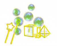 ΠΕΡΙΕΧΟΜΕΝΑ: Πλαστικός κρίκος x1, Χρωματιστός σπάγκος x1 , Δίσκος για φούσκες x1, Ράβδος σε σχήμα πυραμίδας x1, Ράβδος σε σχήμα κύβου x1 ,Διάλυμα για φούσκες x1, Μεγάλα πώματα για τις ράβδους x2, Επιστόμιο x1, Ράβδος σε σχήμα αστεριού x1, Στρογγυλή ράβδος x1, Κουμπωτά χερούλια για τις ράβδους x2, Μεγάλα ραβδιά για φούσκες x2, Μακριά καλαμάκια x2.