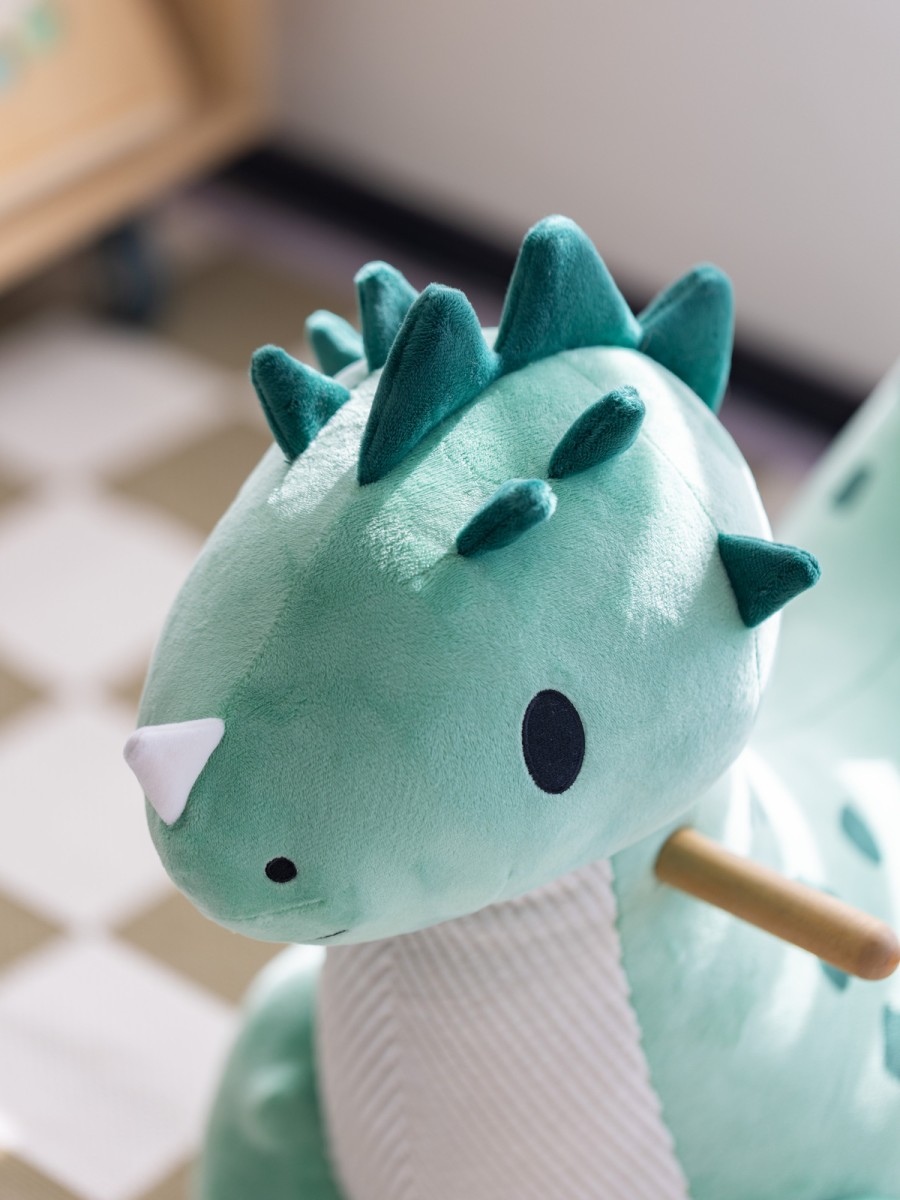 Αυτός ο χαριτωμένος ξύλινος κουνιστός δεινόσαυρος θα γίνει ο ιδανικός σύντροφος στις πρώτες βόλτες του μικρού σας μέσα στο σπίτι! Είναι κατασκευασμένος από βελούδινο ύφασμα, εξαιρετικά απαλό και άνετο στην αφή – ιδανικό για τα μικρά χεράκια των παιδιών! Ο σχεδιασμός του δεινόσαυρου είναι από τους αγαπημένους των παιδιών και υπόσχεται πολλές ώρες διασκέδασης με μια βόλτα! Παράλληλα, βοηθά στην ανάπτυξη της ισορροπίας και του συντονισμού καθώς τα παιδιά κρατούν τις λαβές και κουνιούνται μπρος-πίσω.