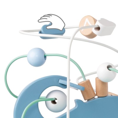 Αυτός ο υπέροχος Ξύλινος Λαβύρινθος αποτελεί έναν ιδανικό τρόπο για να προσεγγίσουν τα παιδιά τον μαγικό κόσμο της ζωής στους ωκεανούς. Τα παιδιά μπορούν να μετακινούν τις πολύχρωμες στρογγυλές χάντρες με διάφορα σχέδια γύρω από τη φάλαινα, πάνω και κάτω από τη θάλασσα, ακολουθώντας το μικρό φαλαινάκι καθώς κολυμπά γύρω από τη μαμά του και περνά ανάμεσα από φύκια, ψάρια και άλλα θαλάσσια στοιχεία. Το παιχνίδι βοηθά στην ανάπτυξη της λεπτής κινητικότητας, του συντονισμού χεριού-ματιού και της ικανότητας επίλυσης προβλημάτων, προσφέροντας ταυτόχρονα ώρες δημιουργικής και διασκεδαστικής απασχόλησης.