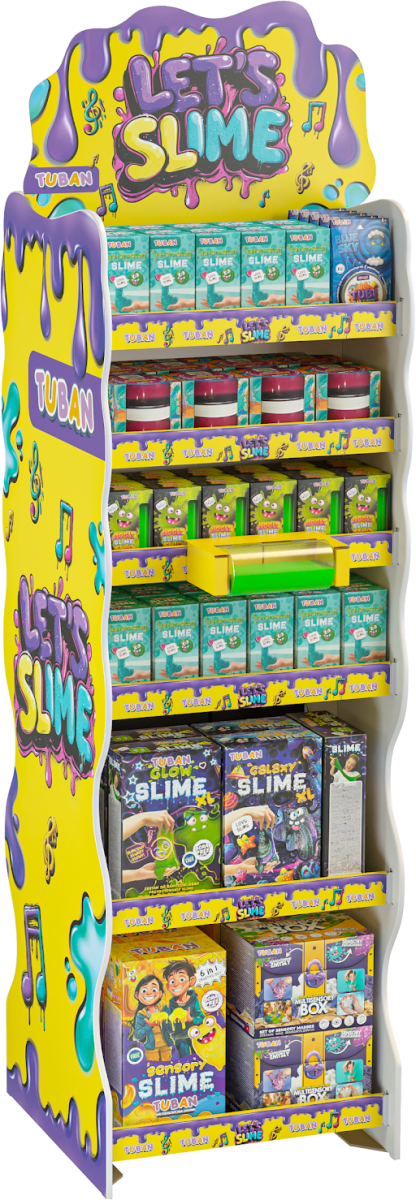 Το ΝΕΟ STAND “Let’s Slime” περιέχει 34 κωδικούς TUBAN slimes, συνολικά 168 τεμάχια. Διατίθεται αποκλειστικά με το συγκεκριμένο mix κωδικών.