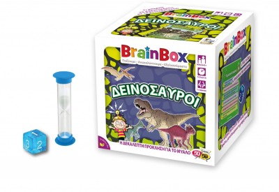 Ανακάλυψε τον κόσμο των δεινοσαύρων! Διάλεξε μία κάρτα μέσα από το BrainBox. Αναποδογύρισε την κλεψύδρα και προσπάθησε να τη μάθεις απ'έξω σε 10 δευτερόλεπτα! Τώρα ρίξε το ζάρι και απάντα στην αντίστοιχη ερώτηση. Αν απαντήσεις σωστά κρατάς την κάρτα, αν απαντήσεις λάθος βάζεις την κάρτα και πάλι μέσα στο BrainBox.