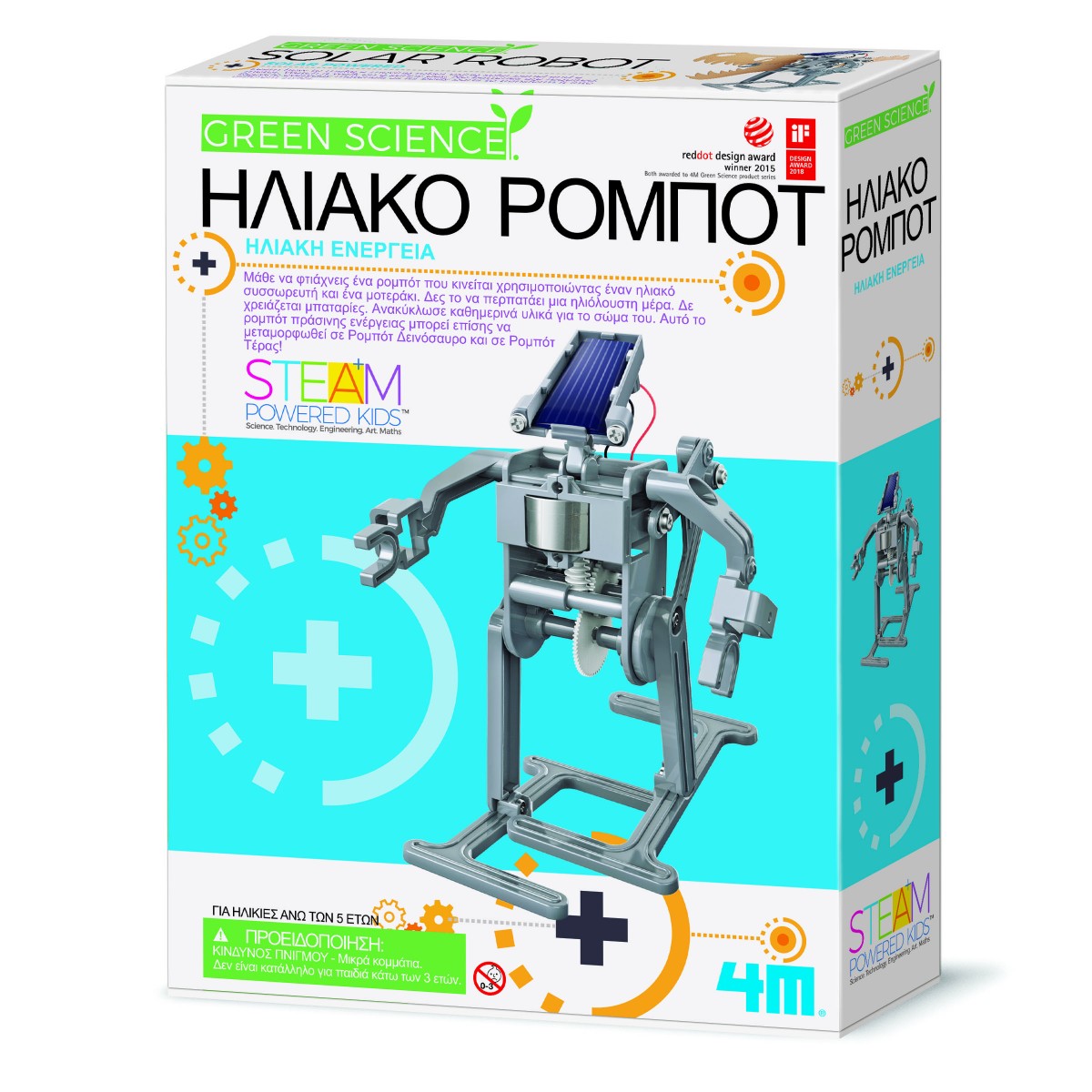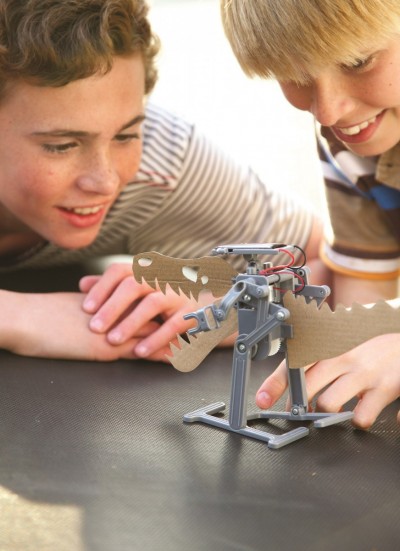 Κατασκεύασε ένα ρομπότ το οποίο κινείται με την βοήθεια του ήλιου. Τοποθέτησε τον ηλιακό συλλέκτη και θα εκπλαγείς από το αποτέλεσμα: Δεν έχει μπαταρίες και όμως περπατάει! Μπορείς να το μετατρέψεις και σε ρομπότ δεινόσαυρο. Διάβασε τα ψυχαγωγικά στοιχεία που περιλαμβάνονται στις οδηγίες και μάθε συναρπαστικές πληροφορίες για την ηλιακή ενέργεια.