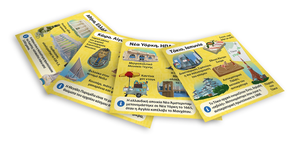 Ταξίδεψε στις πιο εντυπωσιακές πόλεις του κόσμου! Διάλεξε μια κάρτα μέσα από το BrainBox. Αναποδογύρισε την κλεψύδρα και προσπάθησε να μάθεις απ'έξω την κάρτα σε 10 δευτερόλεπτα! Τώρα ρίξε το ζάρι και απάντησε στην αντίστοιχη ερώτηση. Αν απαντήσεις σωστά κρατάς την κάρτα, αν απαντήσεις λάθος βάζεις την κάρτα πάλι μέσα στο BrainBox.