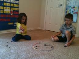 Ο πρώτος παίκτης τοποθετεί το βόλο του σε όποια θέση θέλει πάνω στην εξωτερική κόκκινη γραμμή της πίστας και ρίχνει σημαδεύοντας τους βόλους που έχουν τοποθετηθεί στο κέντρο. Αν η βολή δεν είναι αρκετά δυνατή και δεν καταφέρει να χτυπήσει τους βόλους ή αν τους χτυπήσει αλλά όλοι οι βόλοι μείνουν μέσα στον μεγάλο κόκκινο κύκλο τότε είναι η σειρά του άλλου παίκτη, ο οποίος διαλέγει τη θέση του πάνω στην κόκκινη γραμμή και ρίχνει.