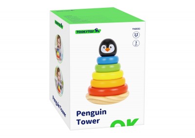 Με αυτό τον ξύλινο πιγκουίνο πυραμίδα, το παιδί μπορεί να φτιάξει δικούς τους συνδυασμούς από πολύχρωμες ροδέλες και μπορεί να μάθει τα διαφορετικά μεγέθη.