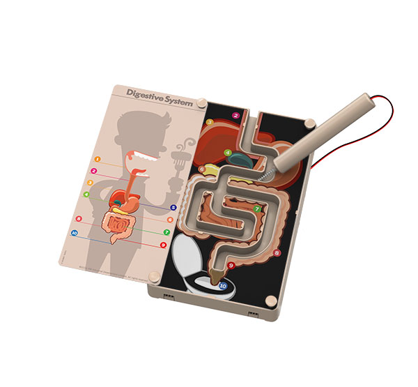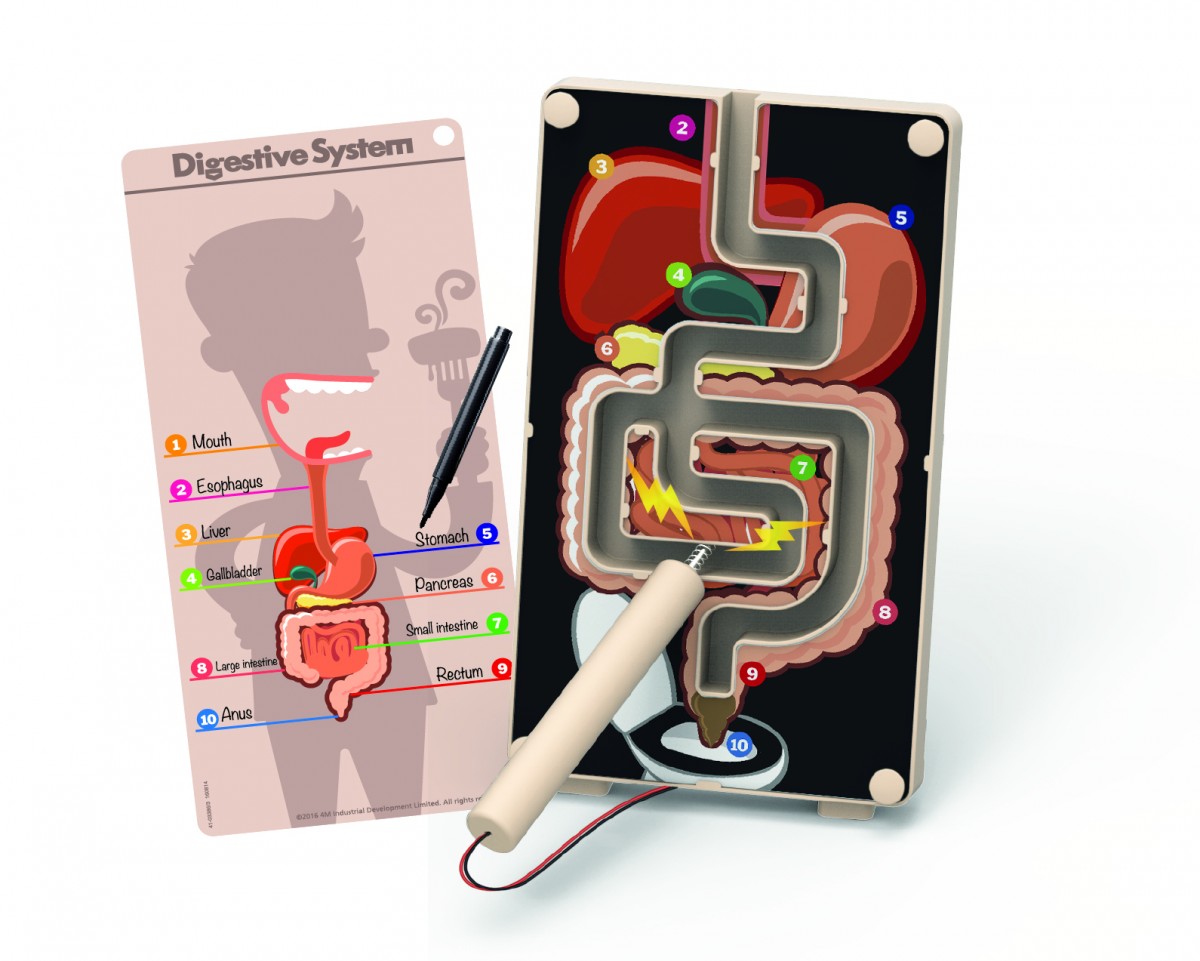 Ανακάλυψε το ταξίδι που κάνει η τροφή μέσα από το ανθρώπινο σύστημα και μάθε για τις λειτουργίες του πεπτικού συστήματος. Θα καταφέρεις να κάνεις τη διαδρομή με το ραβδί χωρίς να χτυπήσει το buzzer; Διάβασε τα ψυχαγωγικά στοιχεία που περιλαμβάνονται στις οδηγίες και μάθε ενδιαφέρουσες πληροφορίες για τα όργανα του πεπτικού συστήματος.