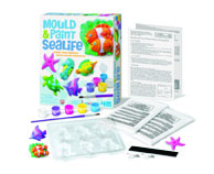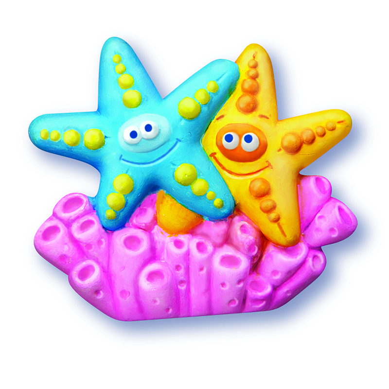 ΠΑΡΑΣΚΕΥΗ: Προετοίμασε το μείγμα του γύψου, ακολουθώντας πιστά τις οδηγίες όπως αναγράφονται στη συσκευασία. Ρίξε το μείγμα του γύψου στα καλούπια και ανακίνηδε τα ελαφρά. Άφησε τον γύψο να στερεοποιηθεί για λίγη ώρα και ζωγράφισε τις θαλάσσιες φιγούρες με τα χρώματα που περιλαμβάνονται.
