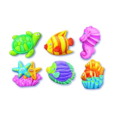 Κατασκεύασε μαγνητάκια και καρφίτσες με θαλασσινά ζωάκια. Χρωμάτισέ τα με δικά σου σχέδια ή σύμφωνα με τις οδηγίες και διακόσμησε το ψυγείο και το δωμάτιό σου. Μπορούν να φορεθούν και σαν καρφίτσες γισ τα ρούχα ή την τσάντα σου.
