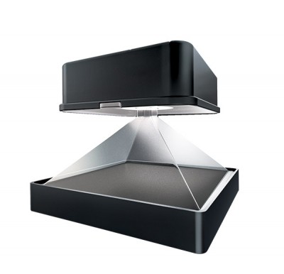 ΤΡΟΠΟΣ ΛΕΙΤΟΥΡΓΙΑΣ: Η μπαταρία δίνει ενέργεια στο φωτάκι LED της βάσης και αυτό φωτίζει προς τα πάνω για να ρίξει φως στη διαφάνεια. Το φως από τη διαφάνεια φωτίζει προς τα πάνω προς την τετράπλευρη οθόνη. Παρόλο που η τετράπλευρη οθόνη είναι διαφανής, λειτουργεί σαν καθρέφτης. Αντανακλάται κάποιο μέρος του φωτός από τη διαφάνεια. Το φως βγαίνει από τη διαφάνεια και η οθόνη αντανακλά ένα μέρος αυτού μέσα από μία γωνία έτσι ώστε το φως να βγαίνει από τα πλάγια. Όταν βλέπετε την οθόνη από τα πλάγια, μπορείτε να δείτε μέσα της μέχρι και την άλλη πλευρά, αλλά μπορείτε επίσης να δείτε και το αντανακλώμενο φως από την οθόνη. Αυτό κάνει το αντικείμενο να φαίνεται σαν να αιωρείται, όπως ένα ολόγραμμα. Όταν βλέπετε τις διαφορετικές πλευρές της οθόνης, βλέπετε εικόνες διαφορετικών πλευρών του αντικειμένου. Αυτό δίνει την εντύπωση ότι η αιωρούμενη εικόνα είναι τρισδιάστατη.