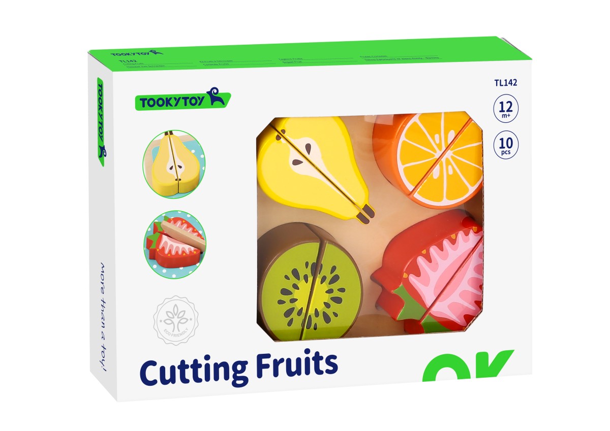 Ο μικρός μας σεφ θα δημιουργήσει γευστικά πιάτα από φρούτα. Χρησιμοποιώντας ένα ξύλο κοπής και ένα ξύλινο μαχαιράκι, μπορεί εύκολα και γρήγορα να κόψει πορτοκάλια, φράουλες, αχλάδια και ακτινίδια και να τα προσφέρει σους φίλους του, μαθαίνοντας έτσι την έννοια του μισού και του ολόκληρου! Έτσι, η μάθηση γίνεται παιχνίδι! Κατάλληλο για παιδιά ηλικίας άνω των 12 μηνών.