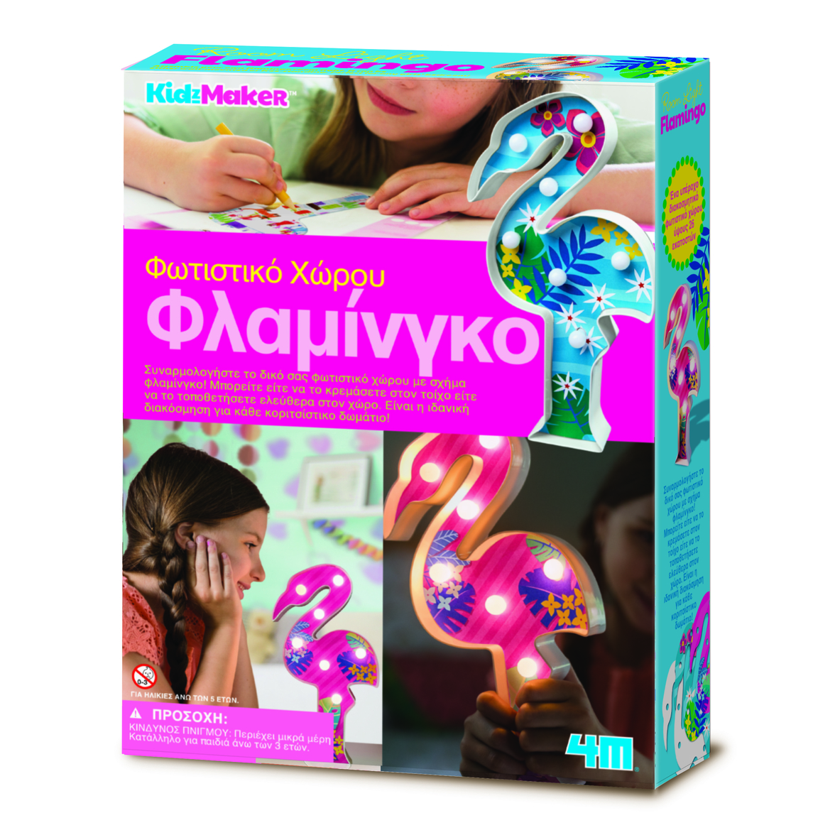 ΠΕΡΙΕΧΟΜΕΝΑ: Πλαίσιο φωτιστικού σε σχήμα φλαμίνγκο x 1, γιρλάντα με x 7 φωτάκια x 1, Καλύμματα για φωτάκια x 7, Έτοιμα φύλλα σχέδια φλαμίνγκο x 2, Λευκό φύλλο φλαμίνγκο x 1.
