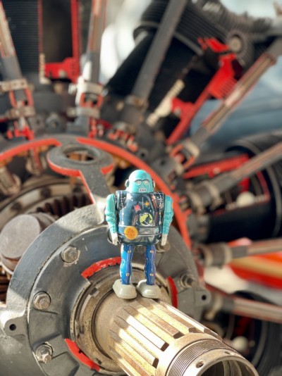 Ένα ιδιαίτερο χειροποίητο κουρδιστό μεταλλικό ρετρό ρομπότ εμπνευσμένο από τις δεκαετίες του ΄50 και του ΄60. Κατασκευασμένο από κασσίτερο, είναι χειροποίητο και αποτελείται από πολύχρωμα γραφικά σχεδιασμένα με κάθε λεπτομέρεια, αγάπη και μεράκι. Στην Ελλάδα ήταν δημοφιλή ως τσίγκινα παιχνίδια.