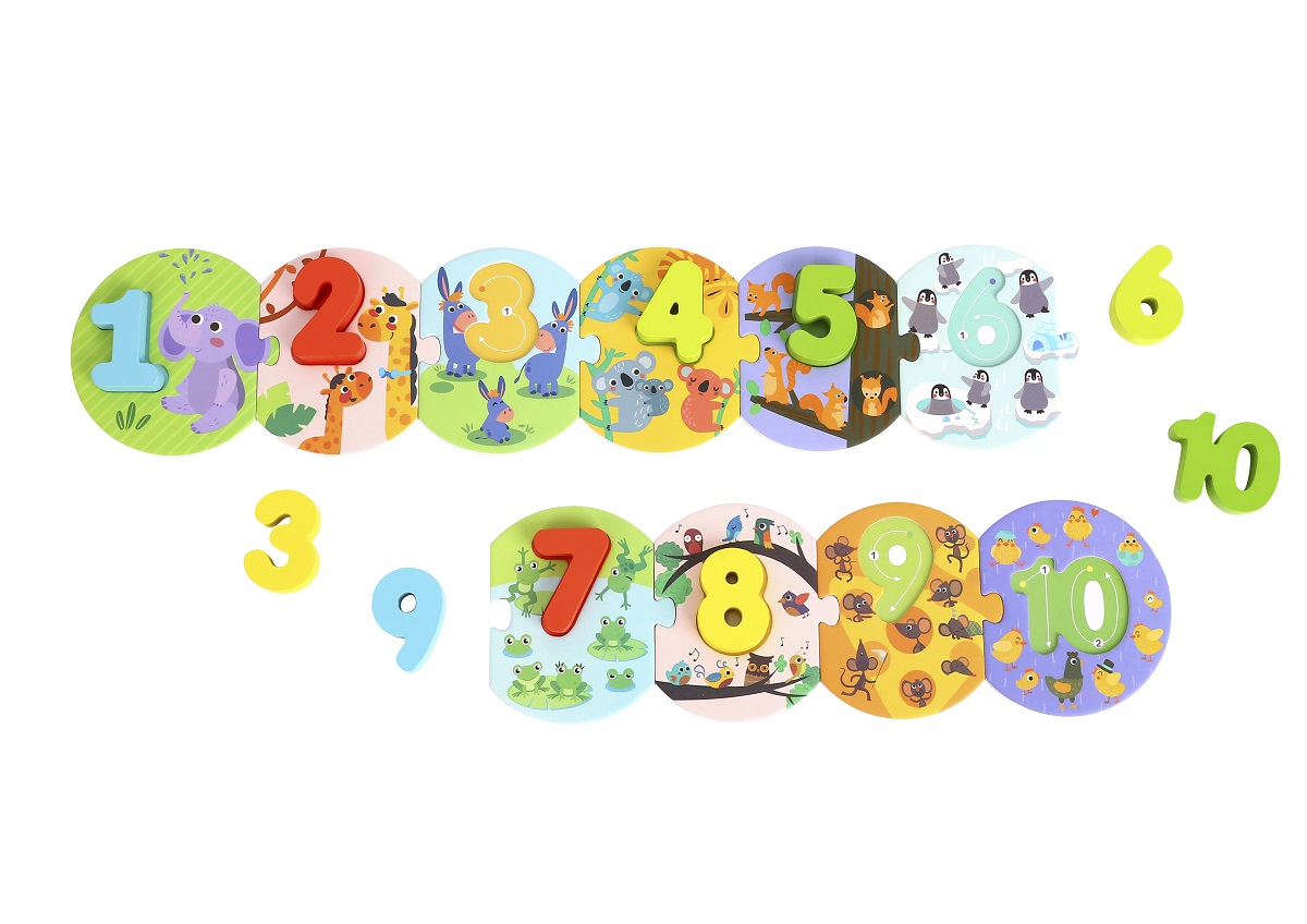 Το παιχνίδι αποτελείται αφενός από 10 στρογγυλά κομμάτια παζλ που απεικονίζουν τον αριθμό και την ποσότητά του μέσα από παιδική εικονογράφηση ζώων και αφετέρου από αριθμούς από το 1 έως το 10 με ωραία χρώματα. Επίσης, επάνω στα κομμάτια του παζλ είναι σχεδιασμένος ο αριθμός με βελάκια για κατευθύνουν το παιδί να σχηματίσει τον αριθμό και να μάθει τον τρόπο γραφής του.