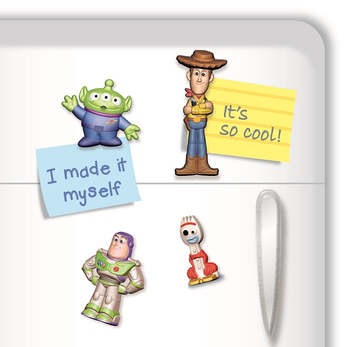 Βάλε τον γύψο στα καλούπια, χρωμάτισέ τον, κόλλησε τους ειδικούς μαγνήτες και διακόσμησε το ψυγείο σου με τους χαρακτήρες από την ταινία Toy Story. Αποτελεί επίσης, ένα ιδιαίτερο δώρο για τους φίλους και την οικογένειά σου!