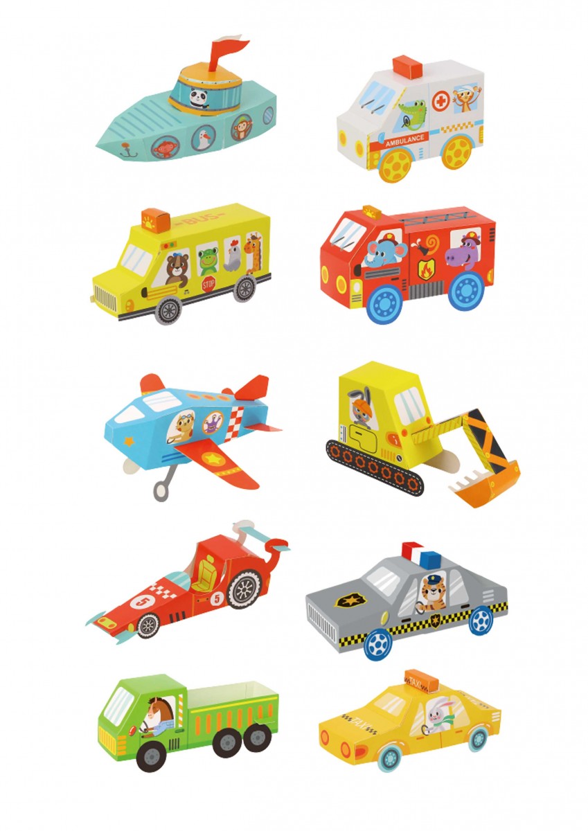Συγκεκριμένα, με αυτήν τη συσκευασία το παιδί μπορεί να φτιάξει 10 διαφορετικά οχήματα όπως υποβρύχιο, ασθενοφόρο, φορτηγό, περιπολικό, εκσκαφέα και πολλά ακόμη για να κάνει τη δική του συλλογή από οριγκάμι.