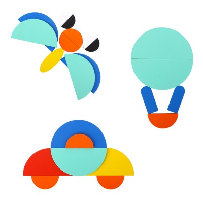 Με αυτό το παιχνίδι τα παιδιά προσπαθούν να ταιριάξουν τα σχήματα μεταξύ τους αναπαράγωντας την εικόνα της κάρτας. Με αυτόν τον τρόπο, τα παιδιά αναπτύσσουν τη δεξιότητα επίλυσης προβλημάτων και τις βασικές μαθηματικές δεξιότητές τους. Επιπλέον, είναι ένα παιχνίδι που καλλιεργεί τη γνωστική ανάπτυξη του παιδιού και διεγείρει την κριτική σκέψη μέσω της απεικονιστικής μνήμης.