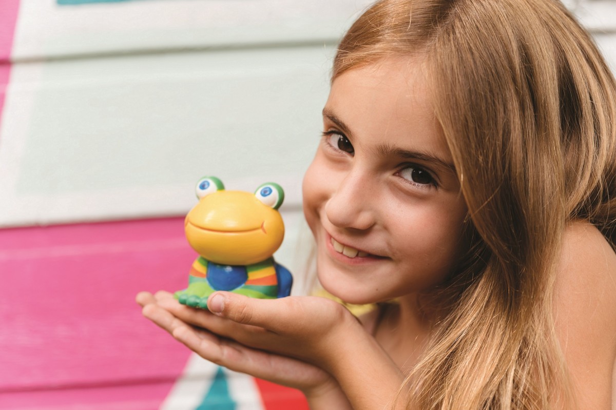 ΠΕΡΙΕΧΟΜΕΝΑ: ένα ομοίωμα βατράχου, 5 διαφορετικά χρώματα και 1 πινελάκι ζωγραφικής.