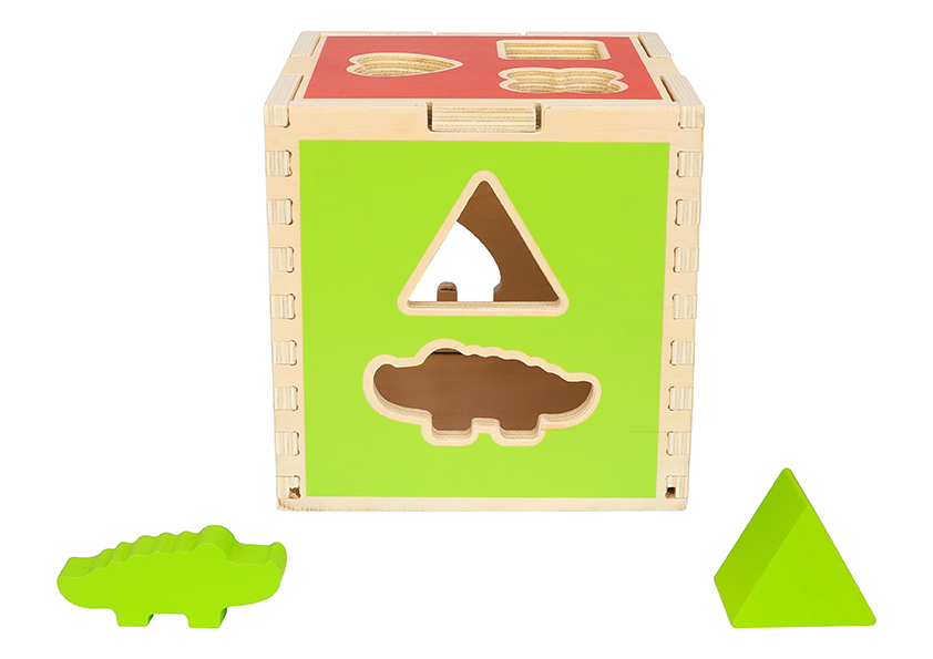 Ο Ξύλινος Κύβος βοηθάει το παιδί να μάθει τα χρώματα, τα σχήματα και τα ζωάκια. Αναπτύσσει την κριτική και λογική ικανότητά του, καθώς κάθε σφήνωμα αντιστοιχεί μόνο σε ένα άνοιγμα. Επίσης, το παιδί αποκτά καλύτερο έλεγχο των κινήσεών του και αναπτύσσει την παρατηρητικότητα του. Τα έντονα χρώματα στον κύβο, τα σχήματα και τα ζωάκια, έλκουν την προσοχή του παιδιού και διατηρούν το ενδιαφέρον του για ώρα.