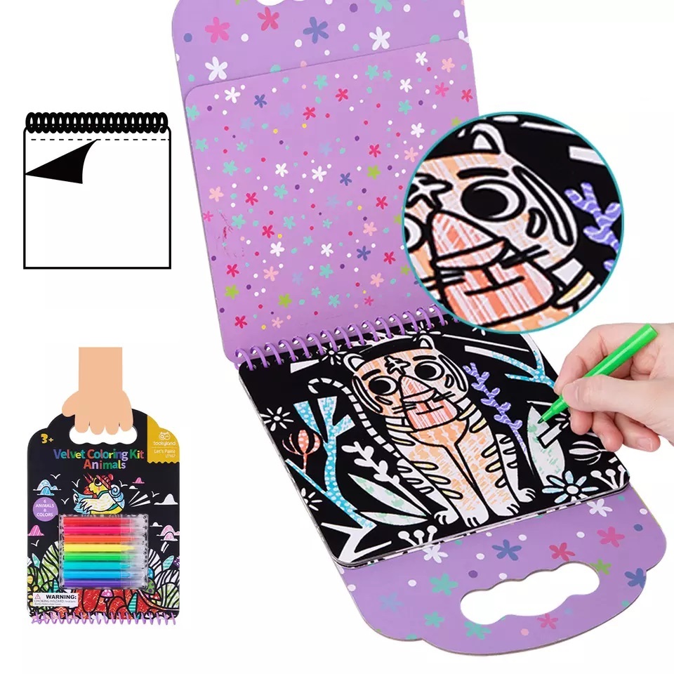 Το σετ ζωγραφικής σε βελούδο ζώα θα ενθουσιάσει τους μικρούς μας καλλιτέχνες. Περιλαμβάνει 6 σελίδες για χρωματισμό με ζωάκια και 8 μαρκαδόρους σε διαφορετικά χρώματα. Οι σελίδες του σετ διαθέτουν τρύπες στο πάνω μέρος τους, ώστε να μπορούν να κοπούν εύκολα. Έχουν βελούδινη υφή και όταν χρωματιστούν αποκαλύπτονται σχέδια ως δια μαγείας. Το σετ ζωγραφικής διαθέτει λαβή στο πάνω μέρος, έτσι ώστε να είναι εύκολο στη μεταφορά. Κατάλληλο για ηλικίες άνω των 3 ετών.