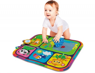 Το Χαλάκι Δραστηριοτήτων Ζωολογικός Κήπος θα εντυπωσιάσει κάθε παιδί με την χαρούμενη εικονογράφηση με ζωάκια και τους διασκεδαστικούς του ήχους. Λόγω της μαλακής του υφής και της αντιολισθητικής λαστιχένιας πίσω όψης, το χαλάκι προσφέρει μια ασφαλή επιφάνεια παιχνιδιού. Το παιδί μπορεί να παίζει ξαπλωμένο με την πλάτη, την δεξιά ή την αριστερή πλευρά, ακόμα και με την κοιλίτσα του. Με το Χαλάκι Δραστηριοτήτων Ζωολογικός Κήπος το παιδί αναπτύσσει την οπτική και τη γνωστική του ικανότητα, μαθαίνοντας να αναγνωρίζει χρώματα και σχήματα.