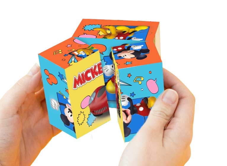 Ένα διασκεδαστικό και πρωτότυπο πάζλ σε μορφή κύβου! Ξεδίπλωσέ τον και φτιάξε μία καινούργια εικόνα. Μπορείς να δημιουργήσεις 10 διαφορετικές εικόνες - παζλ. Κάθε πλευρά κρύβει και μία έκπληξη από τις συναρπαστικές περιπέτειες των αγαπημένων σου ηρώων, που σε περιμένει να την ανακαλύψεις. Ετοιμάσου για ατελείωτο παιχνίδι με τον απίθανο Mickey!