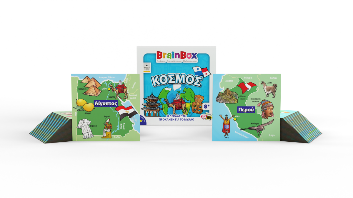 Εξερεύνησε όλες τις χώρες του κόσμου από το σπίτι σου! Διάλεξε μια κάρτα μέσα από το BrainBox. Αναποδογύρισε την κλεψύδρα και προσπάθησε να μάθεις απ' έξω την κάρτα σε 10 δευτερόλεπτα! Τώρα ρίξε το ζάρι και απάντησε στην αντίστοιχη ερώτηση. Αν απαντήσεις σωστά κρατάς την κάρτα, αν απαντήσεις λάθος βάζεις την κάρτα πάλι μέσα στο BrainBox.