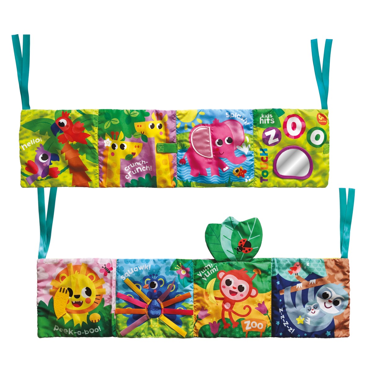 Κάντε το παιχνίδι του μωρού σας συναρπαστικό με ένα υπέροχο παιχνίδι 2 σε 1 - προστατευτικό κούνιας και βιβλίο! Αυτή η διπλής όψης πτυσσόμενη πανοραμική σκηνή ζωολογικού κήπου διαθέτει πολύχρωμα ζώα με σχέδιο κατάλληλο για την ηλικία και προσφέρει εκπληκτικά στοιχεία δραστηριότητας σε κάθε δίπλωμα - τα μικρά μπορούν να αγγίξουν διαφορετικές υφές, να ακούσουν ήχους, θροΐσματα, να παίξουν με το ασφαλές καθρεφτάκι για μωρά. Η εξερεύνηση των ερεθισμάτων αφής αυτού του πολυλειτουργικού προστατευτικού κούνιας είναι εξαιρετικά ωφέλιμη για τις λεπτές κινητικές δεξιότητες των μωρών και την ανάπτυξη του συντονισμού χεριού-ματιού. Το προστατευτικό στερεώνεται εύκολα στην κούνια, καθώς έχει πολλά λουράκια για δέσιμο. Μεγάλη διασκέδαση την ημέρα και απόλυτη ασφάλεια τη νύχτα!